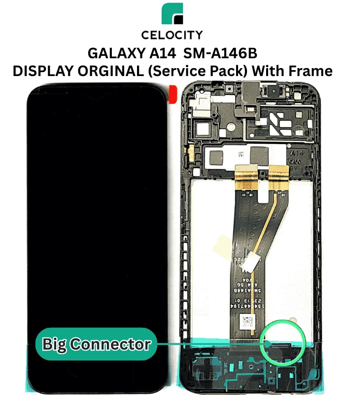 SAMSUNG GALAXY A14 5G SM-A146B LCD DISPLAY + TOUCHSCREEN Black (BIG CONNECTOR) Original With Frame – Service Pack